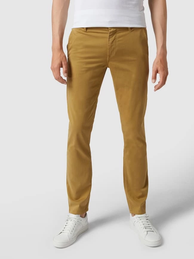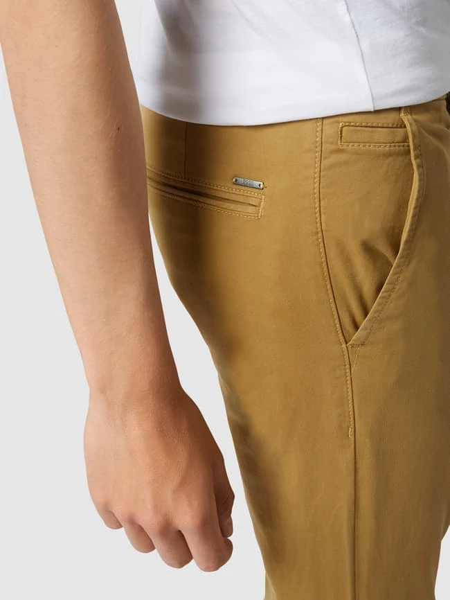 Die Chino von BOSS ist aus einem Baumwoll-Elasthan-Mix gefertigt und im Slim Fit gehalten. Sie kommt mit französischen Eingrifftaschen, Knopf- und Reißverschluss und Paspeltaschen am Gesäß.