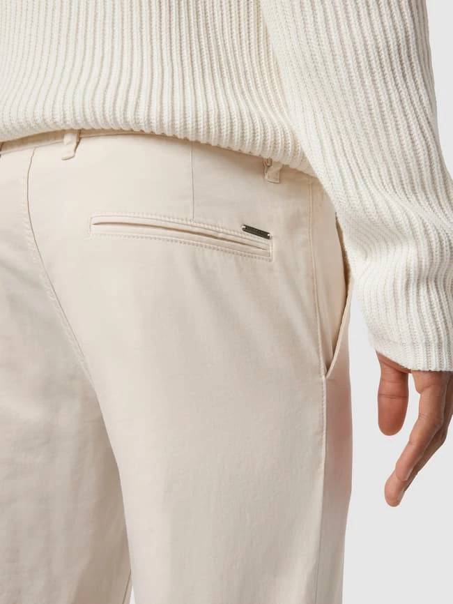 Die Chino von BOSS ist aus einem Baumwoll-Elasthan-Mix gefertigt und im Slim Fit gehalten. Sie kommt mit französischen Eingrifftaschen, Knopf- und Reißverschluss und Paspeltaschen am Gesäß.