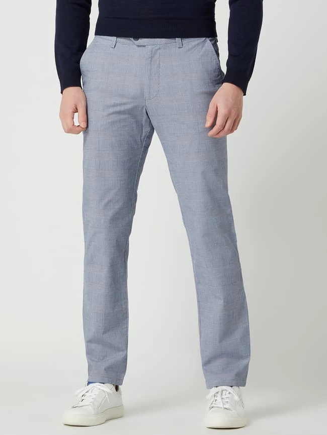 Die Chino von Christian Berg Men ist aus einem Baumwoll-Elasthan-Mix gefertigt und zulaufend geschnitten. Sie zeigt sich mit Glencheck-Muster, französischen Eingrifftaschen und geknöpften Leistentaschen am Gesäß. Der Vorteil von Chinos? Sie sind zeitlos und kaschieren kräftige Oberschenkel.