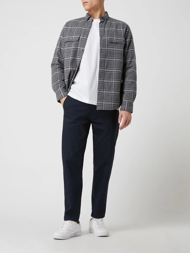 Die Chino von CINQUE ist aus einer Baumwollmischung mit Stretch-Anteil gefertigt und gerade geschnitten. Sie kommt mit Reißverschluss, französischen Eingrifftaschen und Logo-Applikation. Der Vorteil von Chinos? Sie sind zeitlos und kaschieren kräftige Oberschenkel.