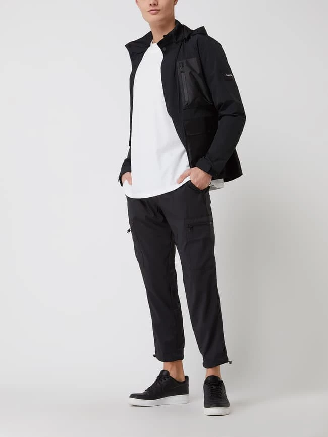 Die Cargohose von CK Calvin Klein ist aus einer Materialmischung mit Stretch-Anteil gefertigt und locker geschnitten. Sie kommt mit leicht elastischem Bund, Gürtel und Tunnelzug an den Beinabschlüssen. Wussten Sie schon? Cargohosen lassen die Silhouette voluminöser erscheinen – ein Vorteil für sehr schlanke Männer.