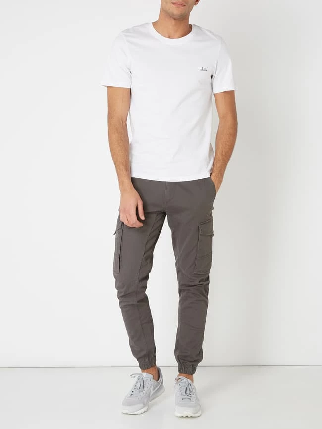 Die Cargohose von JACK & JONES ist aus reiner Baumwolle gefertigt. Sie zeigt sich mit leicht zulaufendem Bein, Cargotaschen und geknöpften Pattentaschen. Teilungsnähte runden das Design ab.