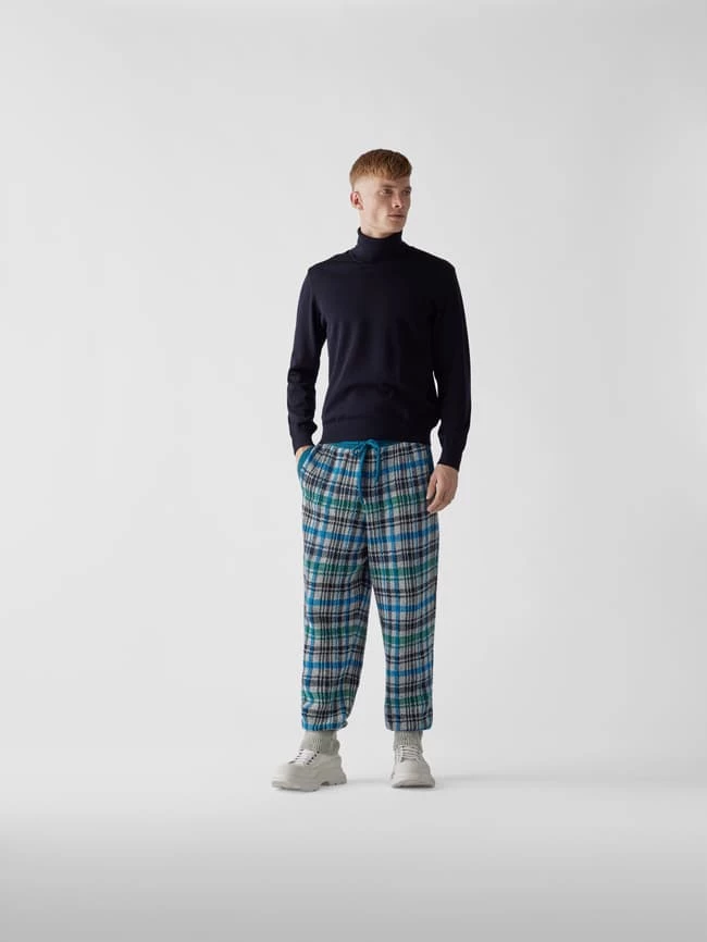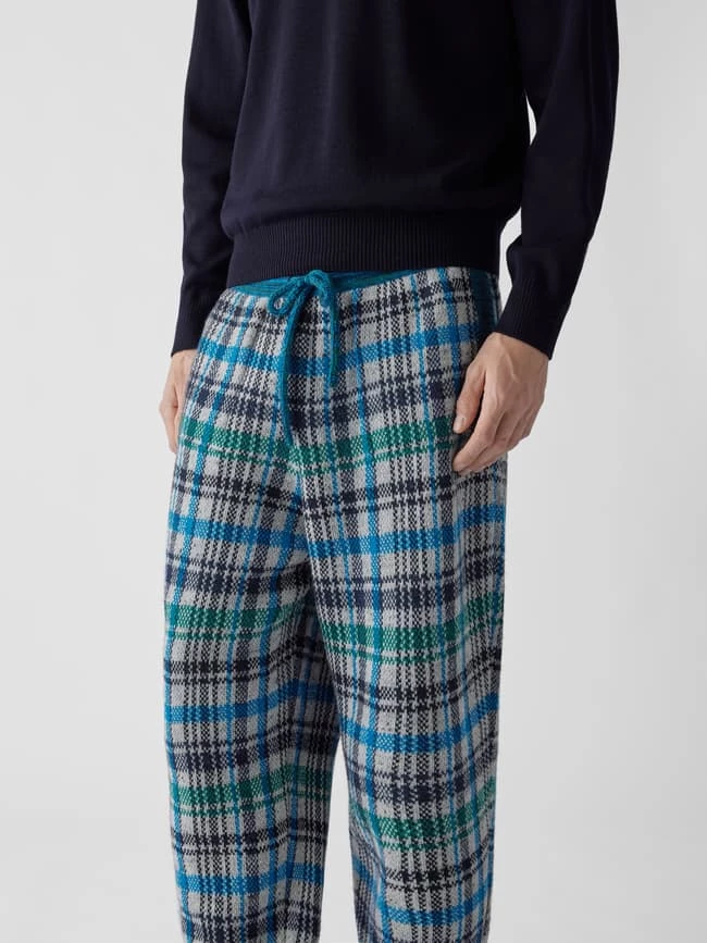 Der hochwertige Woll-Mix mit Alpaka-Anteil und die lockere Passform unterstreichen den ausgezeichneten Tragekomfort dieser Hose der Premiumbrand Maison Flaneur. Durch den Bund mit Tunnelzug und die gerippten Abschlüsse wird das Modell ergänzt. Das Glencheck-Muster und die seitlichen Eingrifftaschen setzen modische Akzente.