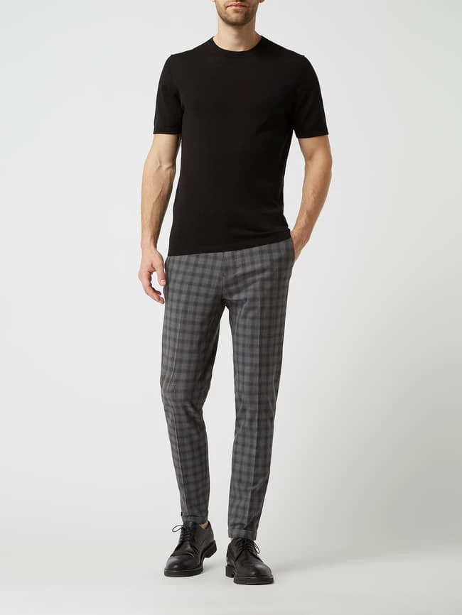Die Chino von Matinique ist aus einer Materialmischung mit Viskose- und Stretch-Anteil gefertigt. Sie kommt mit schmalem Bein, Karomuster und französischen Eingrifftaschen. Der Vorteil von Chinos? Sie sind zeitlos und kaschieren kräftige Oberschenkel.