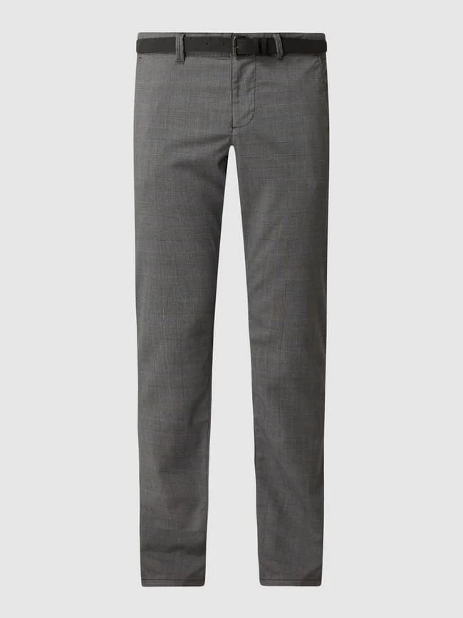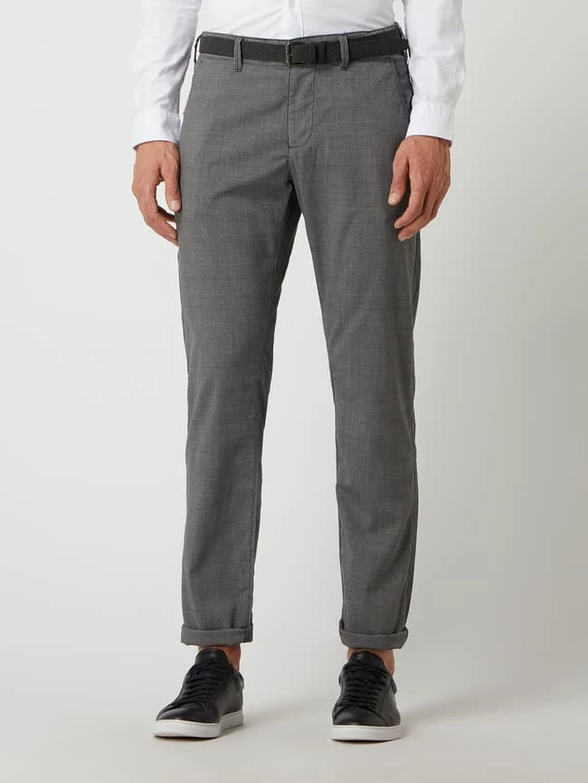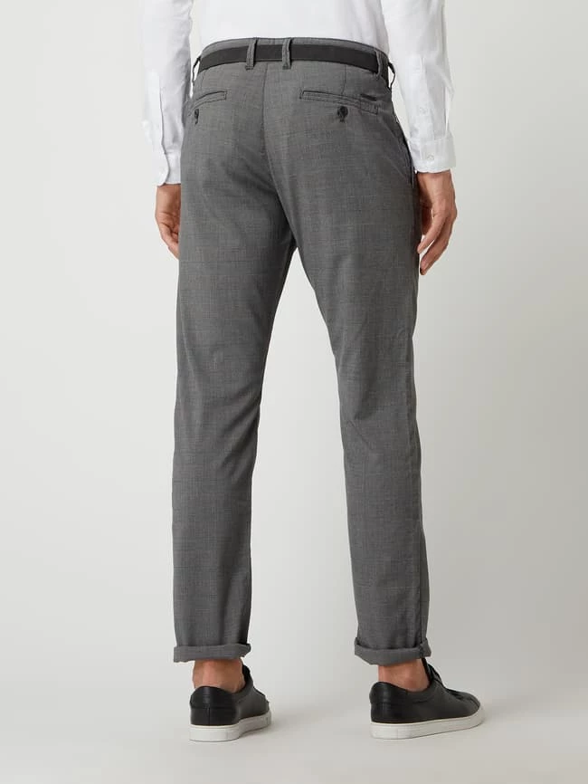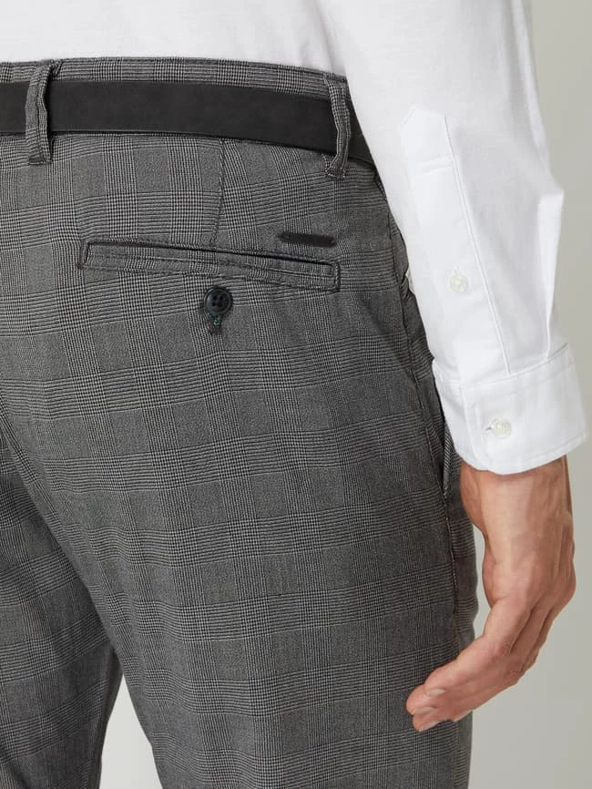Die Chino von MCNEAL ist aus einer Materialmischung mit Viskose- und Stretch-Anteil gefertigt. Sie kommt im Slim Fit mit Glencheck-Muster, Gürtel und französischen Eingrifftaschen. Der Vorteil von Chinos? Sie sind zeitlos und kaschieren kräftige Oberschenkel.