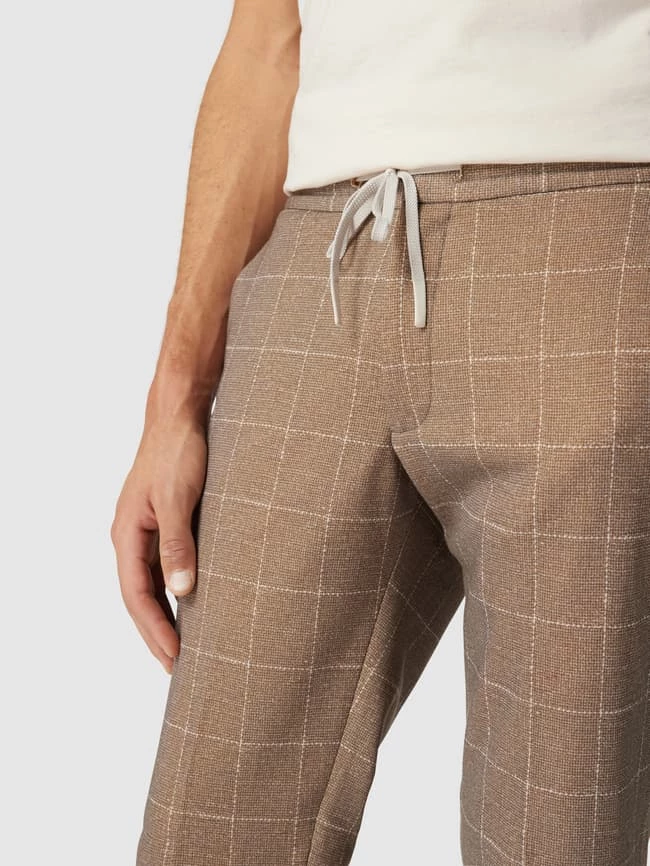 Die Stoffhose von MCNEAL ist aus einem Material-Mix mit Baumwoll-Anteil gefertigt und im Tapered Fit gehalten. Sie zeigt sich mit Karomuster, französischen Eingrifftaschen und elastischem Bund mit Tunnelzug.