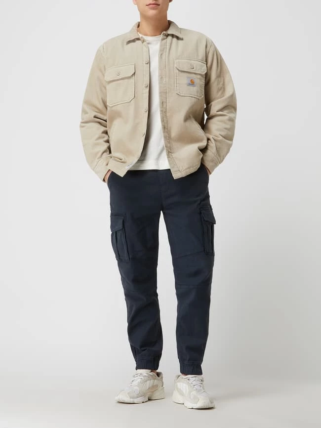 Die Cargohose von REVIEW ist aus einem Baumwoll-Elasthan-Mix gefertigt. Sie kommt in lockerer Passform mit elastischem Tunnelzug und Cargotaschen. Wussten Sie schon? Cargohosen lassen die Silhouette voluminöser erscheinen – ein Vorteil für sehr schlanke Männer.