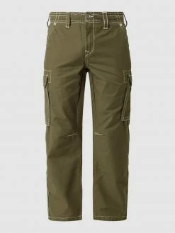 Die Cargohose von True Religion ist aus reiner Baumwolle gefertigt und gerade geschnitten. Sie kommt mit Reißverschluss, Eingrifftaschen und Kontrastnähten. Wussten Sie schon? Cargohosen lassen die Silhouette voluminöser erscheinen – ein Vorteil für sehr schlanke Männer.