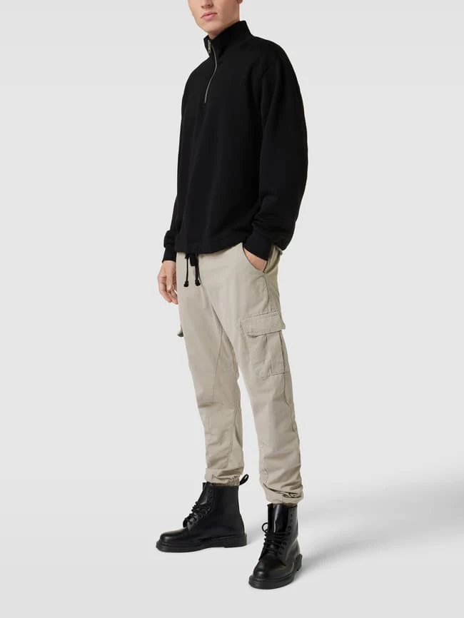 Die Cargohose von URBAN CLASSICS ist aus reiner Baumwolle gefertigt und in lockerer Passform gehalten. Sie zeigt sich mit Knopf- und Reißverschluss, Cargotaschen und elastischen Beinabschlüssen.